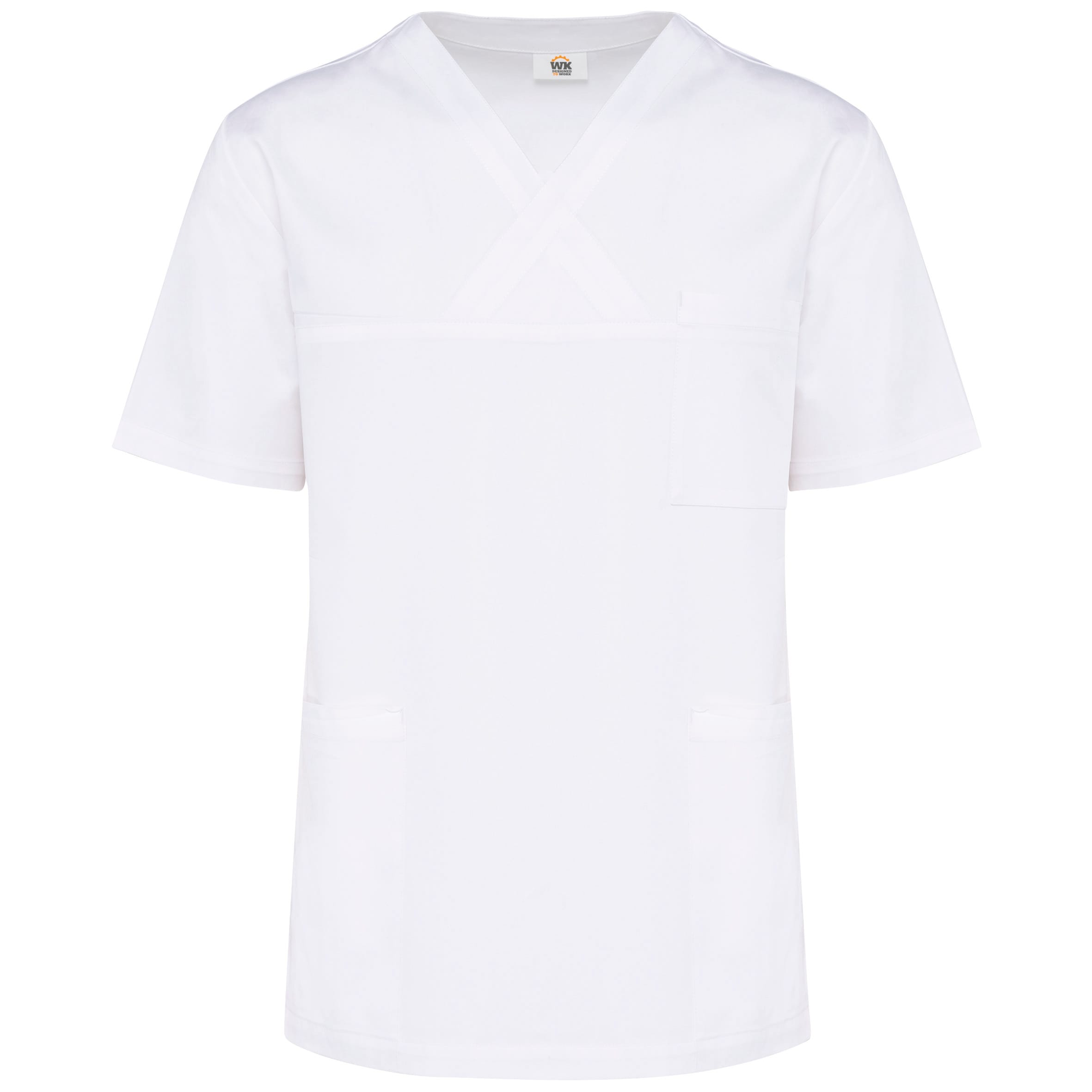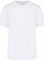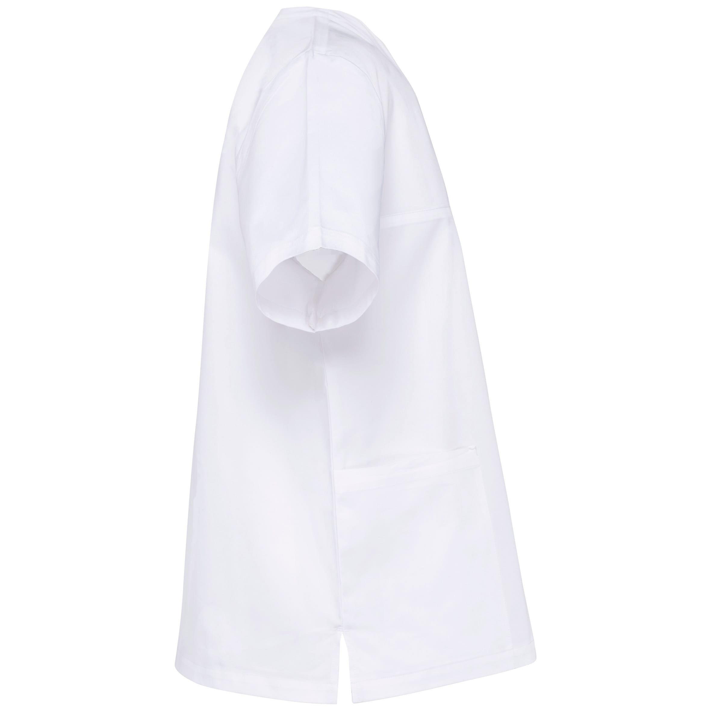 Tunique coton personnalisée unisexe en tissu twill 100% coton, alliant confort et durabilité. coupe confortable, encolure en v croisée, 3 poches plaquées, fentes latérales. lavage à 60°C. étiquette détachable pour une personnalisation facile.
