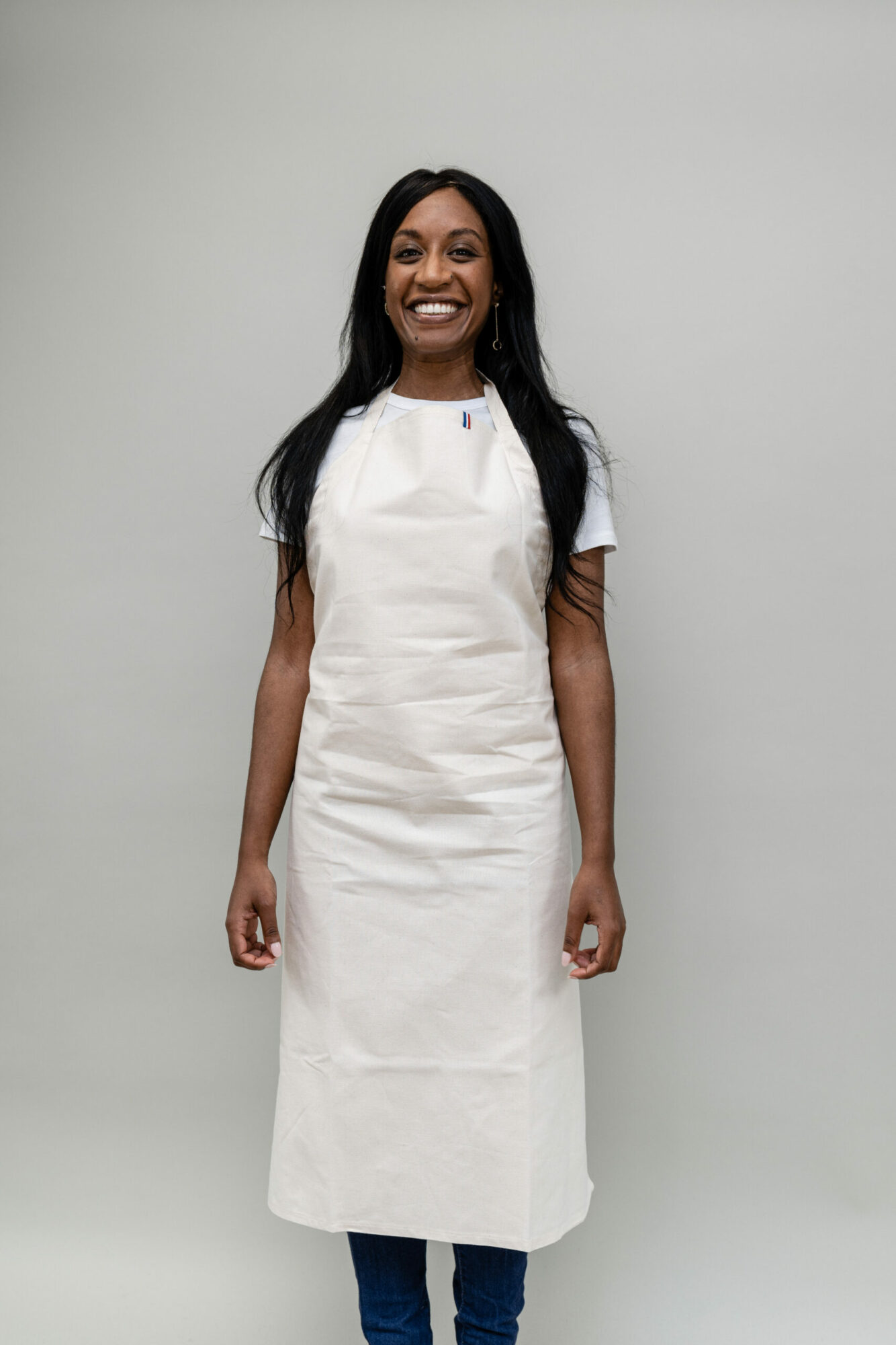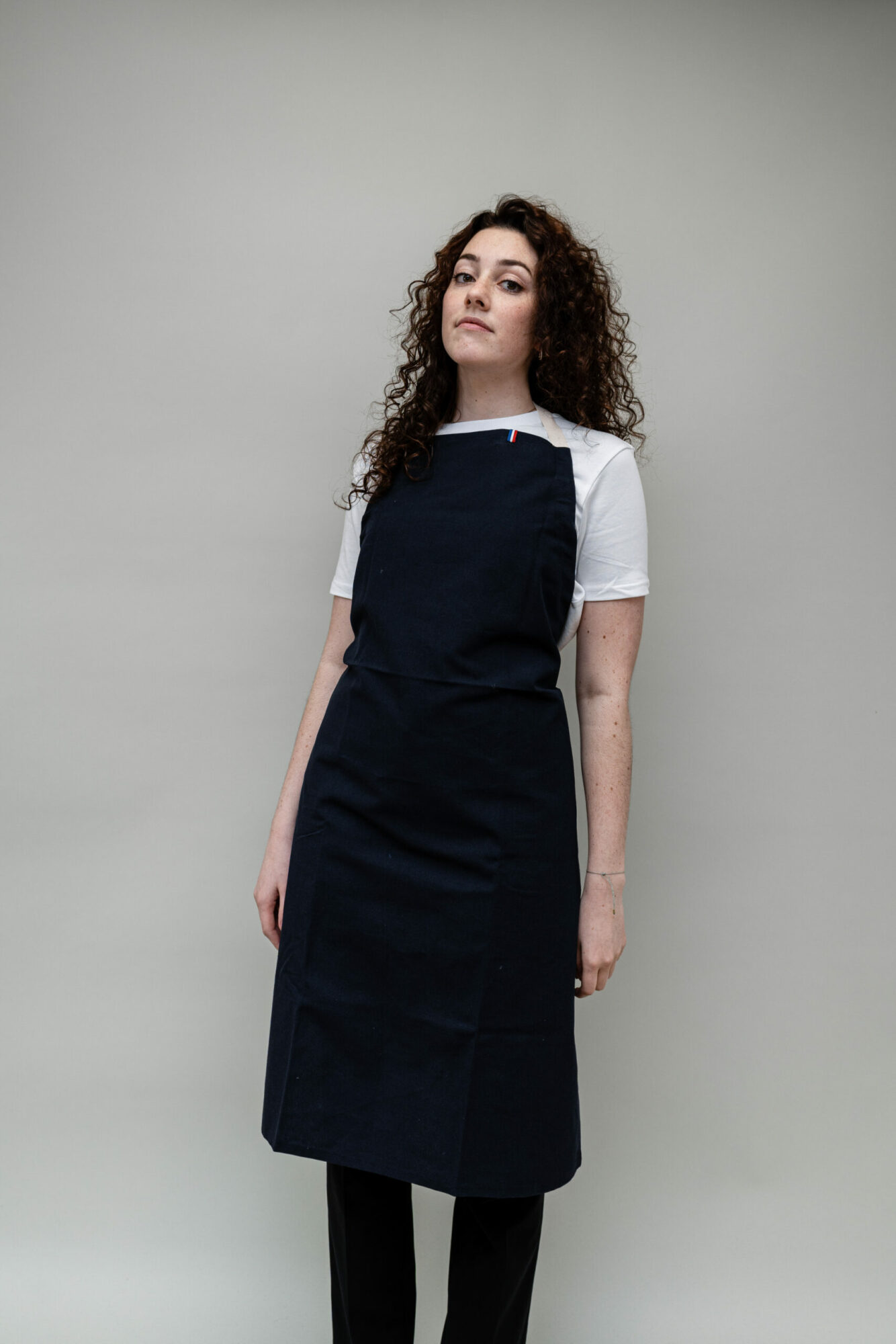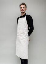 Adopte le tablier fabriqué en France en 100% coton biologique. Coupe standard avec réglage de hauteur, lien naturel et poche plate. Détail ruban tricolore. Personnalise ce tablier éthique pour un style unique. Matière douce, labellisée Organic 100 et Oeko-Tex, 240g toile simple.