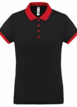 Polo de golf à personnaliser femme en maille piquée cool plus® 100% polyester. coupe cintrée moderne, col et manches contrastés. patte 4 boutons, fentes latérales. léger et respirant, idéal pour allier performance et style. tailles xs à xxl, 180 g/m².