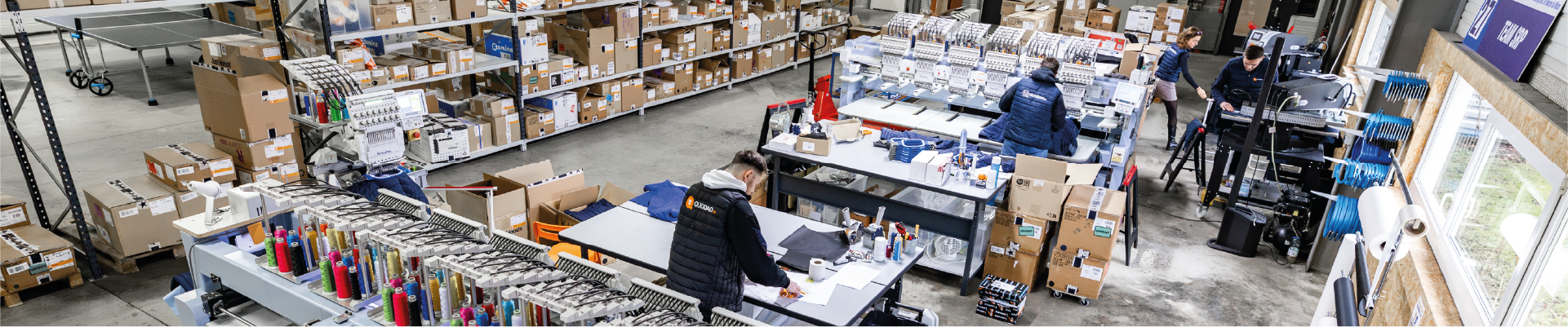 QUODAO s’impose aujourd’hui comme un acteur majeur de la personnalisation textile pour les professionnels. Avec une équipe à taille humaine surmotivée, l’ensemble de nos personnalisations textiles sont réalisées dans notre atelier au Mans, en Sarthe (72) : broderie, flocage, transfert.